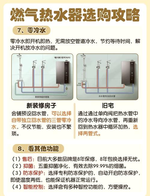 〖One〗、选购燃气热水器时,应坚持以下“6不买”原则:不买不支持低水压启动的热水器:在高层住宅或老旧小区,水压可能不稳定,不支持低水压启动的热水器可能无法正常工作。不买非恒温热水器:传统热水器水温波动大,影响洗浴体验。恒温热水器能自动调节火力,保持水温恒定。