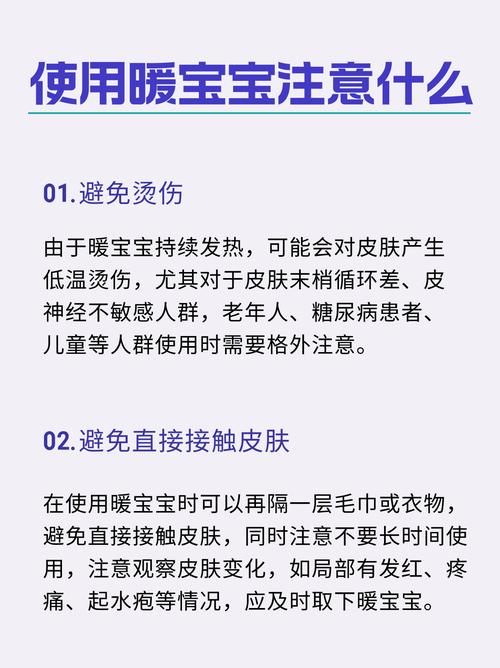 〖Five〗、对于婴儿和小孩而言,他们的皮肤较为娇嫩,容易因暖宝宝的持续高温而受损。孕妇则需特别注意腹部保暖,以免对胎儿造成不良影响。而年老体弱者由于身体机能下降,对高温的耐受能力较弱,同样需要谨慎使用。此外,患有糖尿病、血液循环障碍等疾病的人群也应避免使用暖宝宝,以免加重症状或引发并发症。