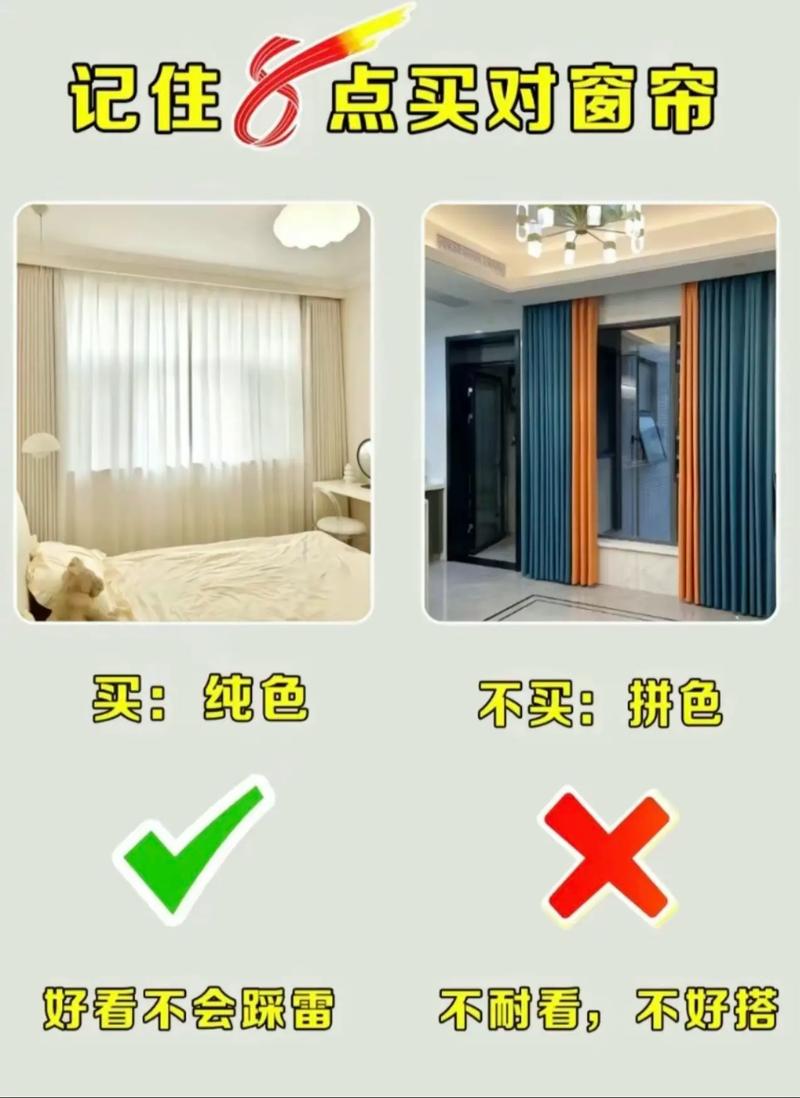 优先选取品牌窗帘:品牌窗帘在材质、做工、质量以及服务上都较为可靠,可以有效避免三无产品的风险。窗帘样式与风格:根据空间选取:客厅适合选取暖色调图案的窗帘,营造热情好客的氛围;书房则建议中性偏冷色调,有助于冷静思考;卧室应选取平稳色或静感色,使房间显得幽雅;餐厅则可用黄色或橙色,增进食欲。