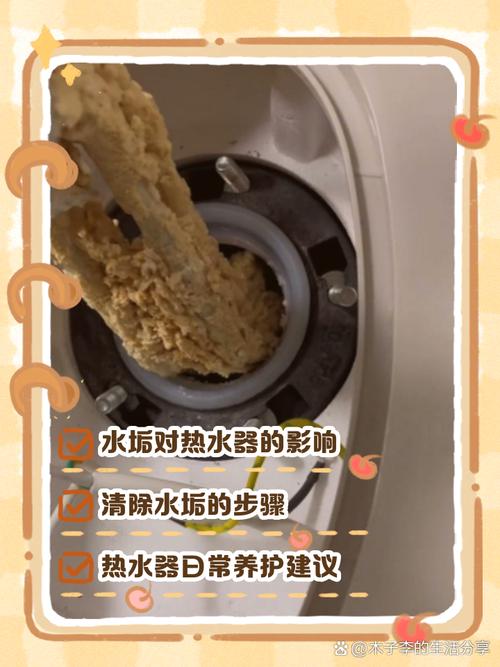 〖Three〗、去除热水器加热棒上的水垢,有以下几种常见方法。可采用化学除垢法。先将适量白醋或专用的水垢清洁剂倒入容器,按一定比例兑水稀释。关闭热水器电源并放空水箱里的水,把稀释后的溶液缓慢倒入水箱,让其浸泡加热棒一段时间,白醋或清洁剂中的酸性成分会与水垢发生化学反应,使水垢逐渐溶解。