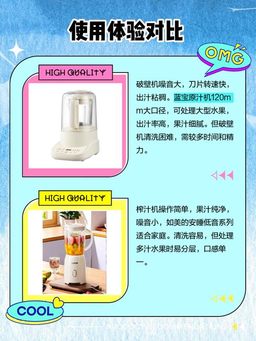 破壁机和榨汁机各有特色,选取哪一种,很大程度上取决于你的需求和喜好。破壁机拥有强大的搅拌能力,能够处理各种食材,包括骨头,能够制作出营养丰富的汤品。而榨汁机则更专注于榨取果汁,它能有效地过滤纤维,保留更多的营养成分,使果汁更加细腻顺滑。