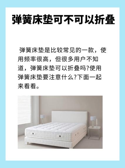 弹簧床垫可以折叠吗 如果不是特定的折叠款,一般是不可以折叠的,否则容易损坏床垫内的弹簧结构,影响床垫的使用寿命。如果用户需要用到弹簧床垫,可以购买可折叠的床垫,市面上有二折、三折和四折三种可以选取,消费者应根据收纳空间大小,来确定购买哪种床垫。