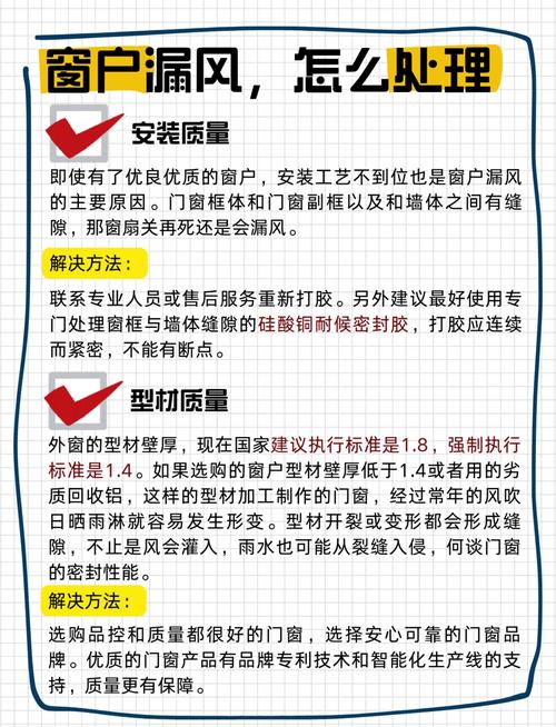 〖Four〗、推拉窗漏风可以通过多种方法进行处理,包括更换密封条、调整窗框、增加挡风设施以及保持窗户关闭紧密等。首先,推拉窗漏风的一个常见原因是密封不严,这通常是由于密封条老化或损坏导致的。为了解决这个问题,可以考虑更换新的密封条。