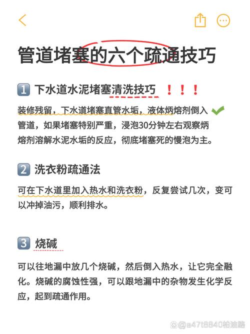 使用水泥溶解剂:市面上有售的水泥溶解剂专门设计用来处理水泥堵塞。这些溶解剂含有能与水泥发生化学反应的成分,通常为强酸性,能够有效溶解水泥。按照产品说明进行操作,将溶解剂倒入下水道中,稍等片刻,水泥即可被分解。 棍子疏通:对于轻微的水泥堵塞,可以使用长棍或钢丝等工具进行疏通。