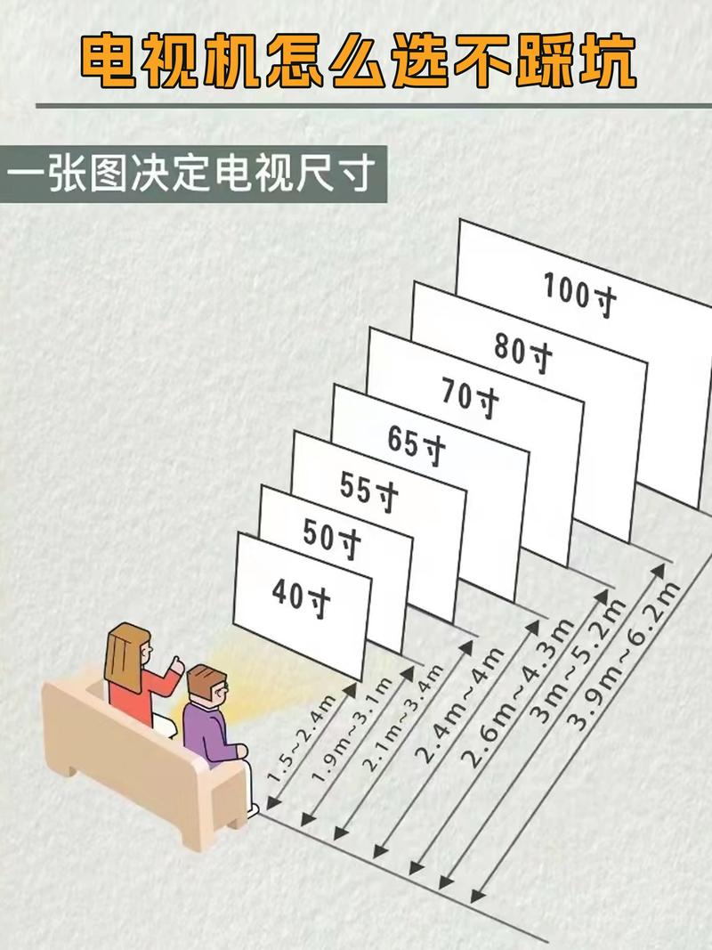 〖Three〗、英寸电视适合在3米到1米之间观看。电视机选购注意事项如下:低蓝光:选取具有视觉舒适度或低蓝光等相关认证的电视,以减少蓝光对眼睛的伤害。亮度调节:在家庭环境中使用时,应调整电视的亮度,避免过亮导致眼睛疲劳。店内展示的电视亮度往往较高,家居环境中应适当调低。