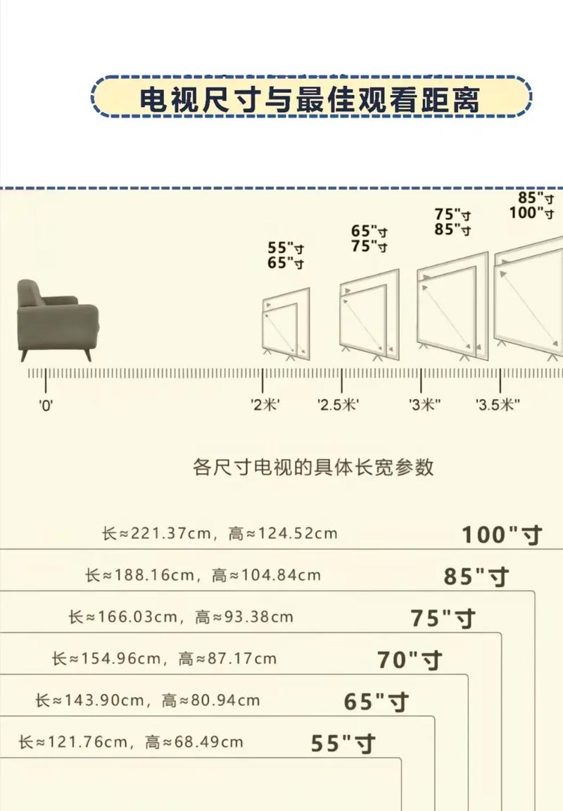 〖One〗、对于70英寸液晶电视,其最佳观看距离通常介于3米至1米之间。这一推荐的观看距离是基于电视屏幕对角线长度的3到4倍来计算的。电视的英寸数实际上是指屏幕对角线的长度,按照1英寸等于54厘米的标准换算,70英寸电视屏幕对角线长度约为178厘米。