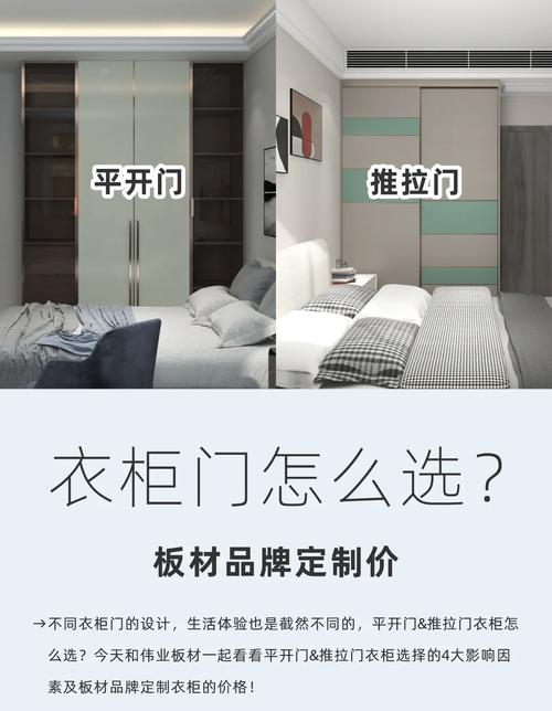 〖Three〗、预算较低:建议选取推拉门,因为推拉门相对来说费用更加实惠,且美观实用。预算充足:可以根据个人喜好选取平开门或推拉门,同时更注重衣柜的材质和五金件的质量。根据个人使用习惯:喜欢打开全部柜门找衣服:建议选取平开门,因为平开门可以完全打开,方便挑选和搭配衣物。