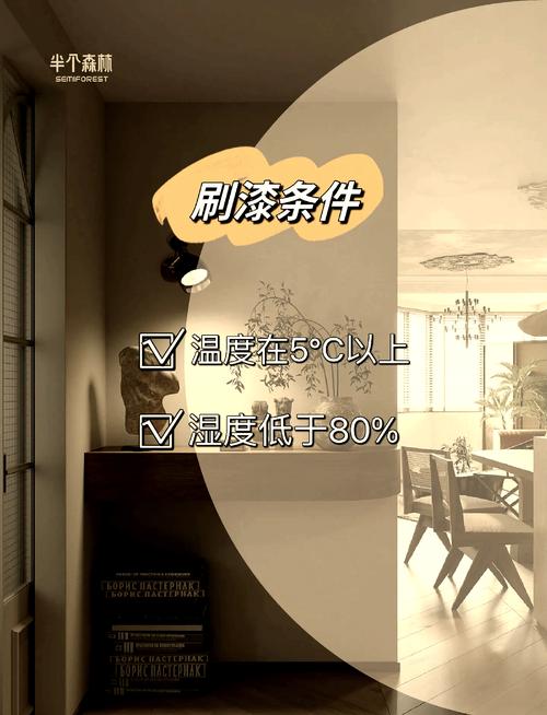 〖Four〗、室内刷漆的适宜温度为1525度之间的常温。以下是关于室内刷漆温度要求的详细解刷漆要求施工环境温度:不低于5℃,不高于35℃,相对湿度不高于85%。因此,雨季、黄梅天以及气温低于5℃的冬季都不适宜刷漆,比较好在晴天、干燥的天气中涂漆。
