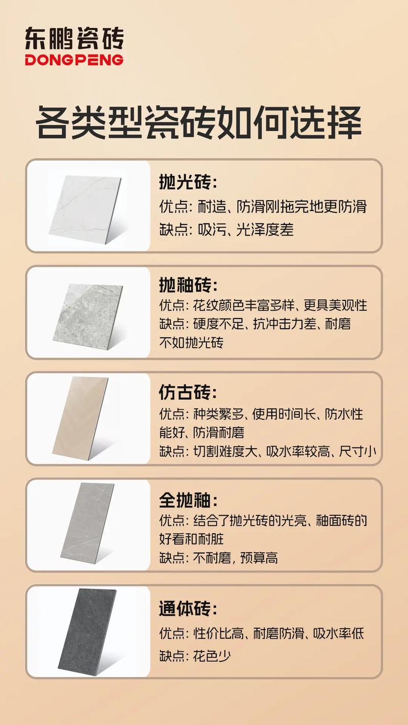 〖Three〗、流量区域:如果客厅是高流量区域,建议选取耐磨性能更强的通体砖。装饰效果:如果更注重客厅的装饰效果,可以选取颜色和纹理更加丰富的抛釉砖。防滑性能:考虑家庭成员的需求,特别是小孩和老人的安全,选取防滑性能更好的通体砖可能更合适。装修风格:根据整体的装修风格和色彩搭配来选取适合的瓷砖类型。
