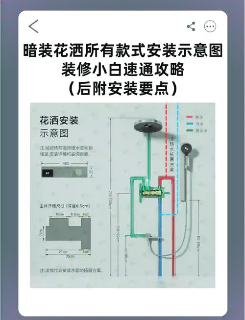 〖One〗、花洒座安装注意事项安装位置花洒座不要安装在门口或窗户旁边,在选购时可以考虑花洒混水阀安装在什么位置,不要等装修好了之后才发现不合适。与墙体保持一个平面安装花洒座要与墙体保持一个平面,如果预留的距离太多,会掩盖不住丝头和螺丝,预留距离太少则对花洒座安装不方便。
