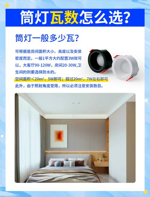 〖One〗、筒灯一般买多少瓦合适 对于筒灯的瓦数选取,建议根据具体使用场景和照明需求来确定。一般来说,家用筒灯的瓦数多在5『1』2瓦之间。以下是详细的解释:根据空间大小选取瓦数 对于较小的空间,例如卧室、书房等,选取较低瓦数的筒灯即可,5『8』瓦的筒灯既能提供足够的照明,又不会显得过于刺眼。