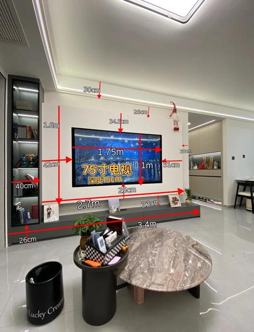 〖Three〗、高度:预留96厘米的空间,以适应75寸电视的高度。 深度:至少预留10厘米的空间,以便安装和散热。具体深度可根据电视的厚度及墙面情况适当调整。首先,75寸电视指的是屏幕对角线长度为75英寸。根据16:9的屏幕比例,宽度约为167厘米,高度约为96厘米。