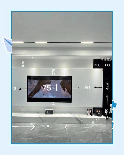 〖Four〗、为了嵌入式安装75寸电视机,应在墙面上预留足够的空间。确保电视机四周至少有10厘米以上的空隙。 75寸电视机的对角线长度为1968厘米,这意味着其长边约为1532厘米,短边约为999厘米,且屏幕长宽比为4:3。 75寸液晶电视有两种尺寸规格。