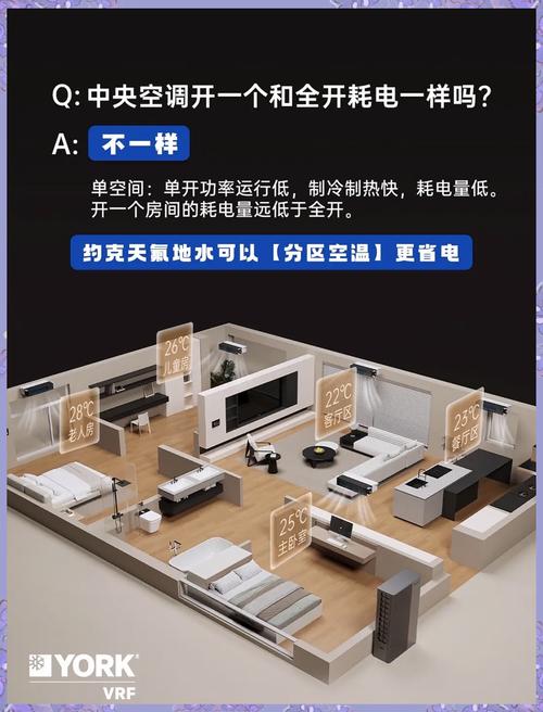 〖Two〗、不一样,家里中央空调开一个房间和全部开起来用电是不一样的。中央空调的运行机制通常涉及到多个室内机与一个或多个室外机相连。当只开一个房间的空调时,只有该房间的室内机在工作,而与之相连的室外机也会根据这个房间的需求来调整输出功率。此时,整个系统的能耗主要集中在为这个房间提供冷热空气上。