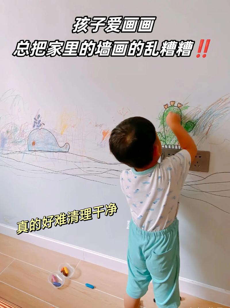 〖Two〗、墙面被孩子画后,可以采取以下几种方法进行翻新:轻微污渍处理:使用120目纱布擦拭:轻轻擦拭墙面直到污渍去除,注意力度要适中,避免损伤墙面。干燥毛巾轻擦:用干燥且干净的毛巾再次轻擦墙面,确保没有污渍残留,严禁使用湿毛巾,以免扩大污渍范围或造成墙面潮湿。