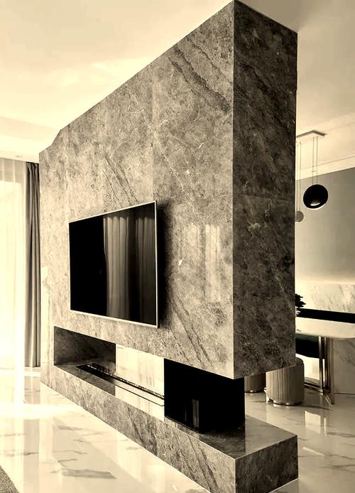 〖Two〗、电视墙贴岩板后悔的原因,很大程度上可归结为产品质量的参差不齐。一些劣质的岩板在使用过程中容易出现开裂、脱落等问题,严重影响了美观与使用。然而,从外观效果来看,岩板以其柔光与亮光两种形态,尤其是亮光系列,更易于打造高端大气的电视背景墙效果,与石材相媲美。
