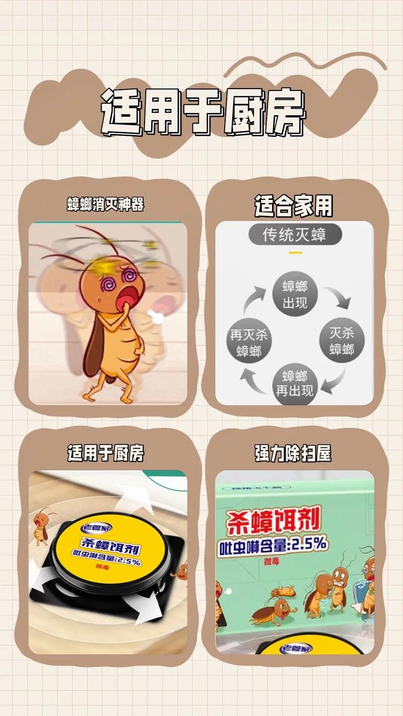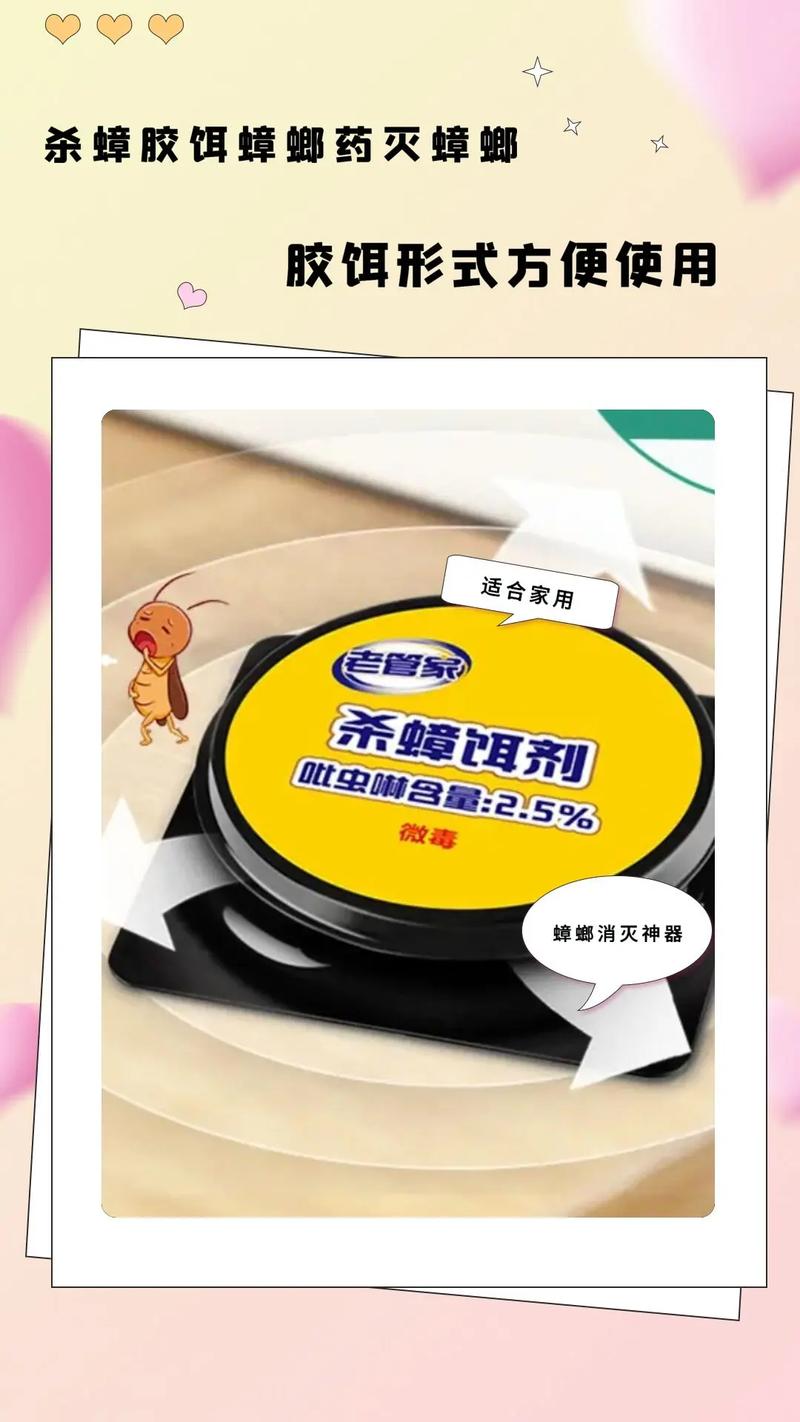 〖Three〗、使用杀蟑胶饵时,应遵循“量少点多”的原则,将药点散布在蟑螂活动频繁的角落、缝隙等处。尤其注意橱柜、抽屉及墙角等隐蔽位置,确保每个点的药量适中,避免大量堆积。施药过程中需避免同时使用其他杀虫剂,以免影响胶饵的效果。