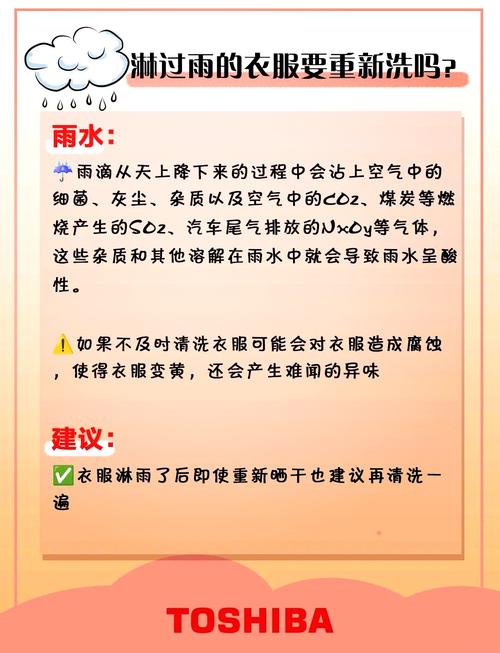 因此,当衣服被雨水淋湿后,是否需要重新洗应该基于衣服的污染程度和个人卫生习惯来决定。在某些情况下,如衣物只是轻微受潮,可以选取晾干。但如果衣物明显脏污或污染,为了确保衣物的清洁和舒适,重新洗涤是推荐的做法。