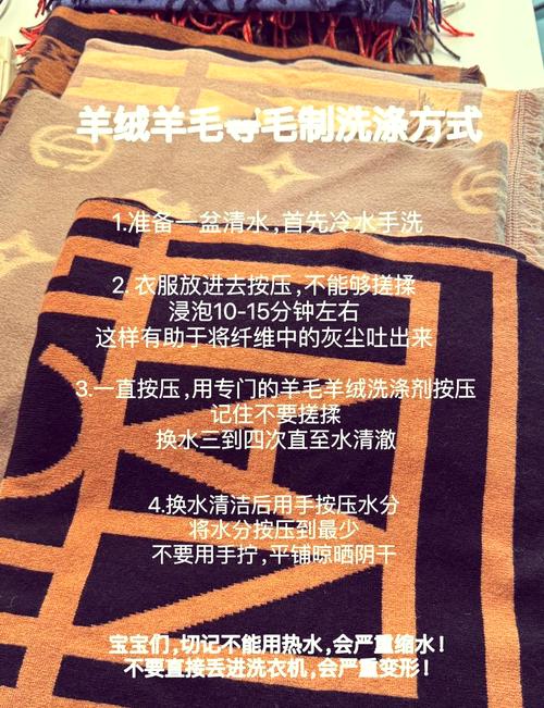 羊绒围巾因其珍贵材质,通常建议干洗。若无条件干洗,可选取手洗。手洗前,需将围巾在冷水中浸泡5至10分钟,提花或多色羊绒围巾可省略此步。之后加入适量洗涤剂,用手轻轻压挤,去除污渍。洗净后,用清水冲洗,直至洗涤剂完全去除。