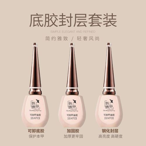 胶类需要照灯油类自然风干他们之间的区别就是可卸持久,可剥持久度一般(大概一周多,也许会更久)水性可剥持久度就更一般了。美甲底胶和底油两者不是同时使用的东西。底油就是普通的护理油,是配合普通的油性指甲油使用的,自然风干。底胶是做光疗甲使用的,必须通过专业的光疗灯照射才能干。