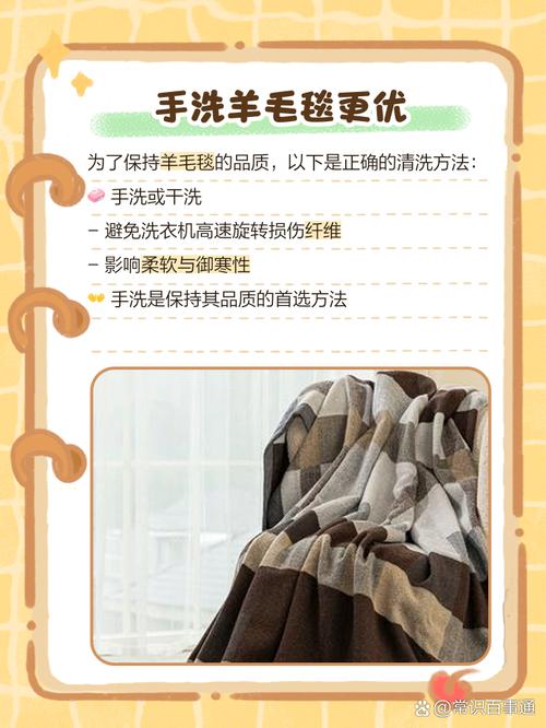 手洗时可以用手轻柔搓洗或者用脚踩,避免用力拧干,轻轻压出毛毯中的水分即可。添加醋或柔顺剂:在清洗水中加几滴醋可以有效地防止毯子变旧。另外,可以添加适当柔顺剂或者白醋,白醋可以预防变老、变黄,柔顺剂可以让毛毯更顺滑。