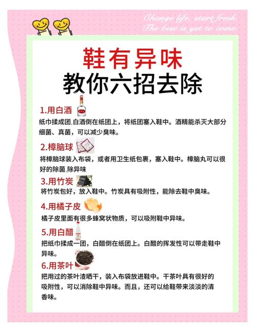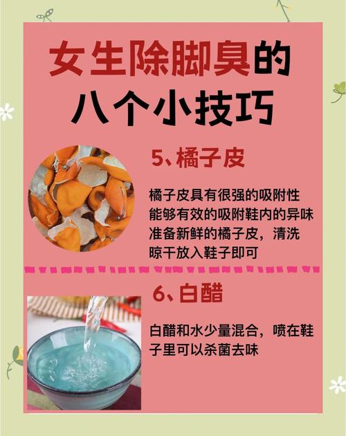 〖One〗、凉鞋臭味的快速去除方法有以下几种:使用柚子皮:将柚子皮撕碎后,直接放在凉鞋内部。原理:柚子皮具有天然的除臭效果,能够有效吸附并去除凉鞋内部的异味。利用茶叶和卫生纸:选取干燥且过期的茶叶,用卫生纸包裹住。将包裹好的茶叶放置在凉鞋中。原理:茶叶具有吸味除臭的功能,同时卫生纸也能辅助除臭,增强效果。