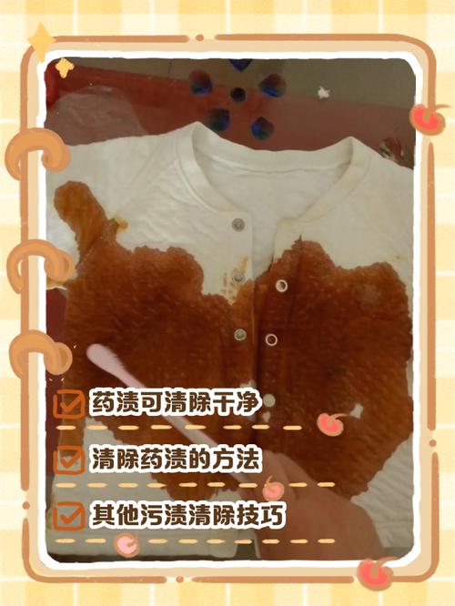 牛奶 立即清洗:如果中药汁刚洒在衣服上,比较好立即进行清洗。 牛奶擦拭:将牛奶煮沸后,用蘸有牛奶的棉布擦拭衣服上的中药渍。 清水冲洗:擦拭完毕后,用清水将衣服冲洗干净。 氨水 稀释氨水:将氨和水以1:10的比例混合,注意氨水具有腐蚀性,使用前必须稀释。 棉签擦拭:用棉签蘸取稀释后的氨水,擦拭衣服上的中药渍。