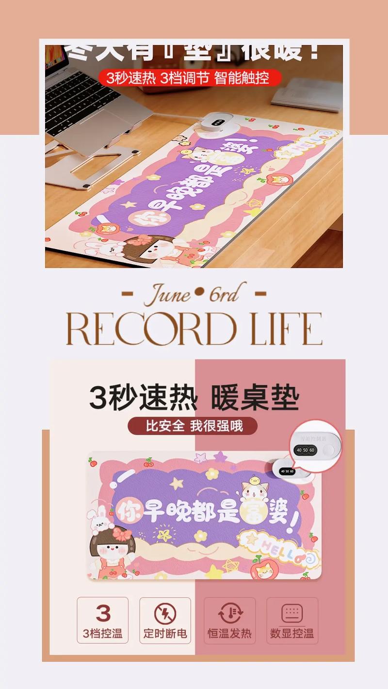 昕科加热桌垫有3C认证的,很多厂家也使用他们的核心技术。这款加热桌垫是10S速热的,能恒温保持且智能温控,4小时会自动关机,久坐有提醒,很好用。而且采用防水材质,也很安全。用了后,冬天用电脑打字就再也不担心手冷了。