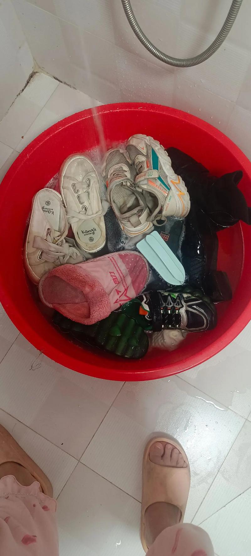 情况一:轻度弄脏 若鞋子只是单纯被雨淋湿,表面仅有少量泥点等轻度污渍,不一定要全面清洗。可以先用干净的湿布轻轻擦拭鞋面,去除可见污渍,再用干布擦干,放在通风良好的地方自然晾干即可。这样能避免过度清洗对鞋子材质造成不必要的损伤。情况二:严重弄脏 要是鞋子被雨水浸泡且沾满大量污泥等,那就需要清洗。