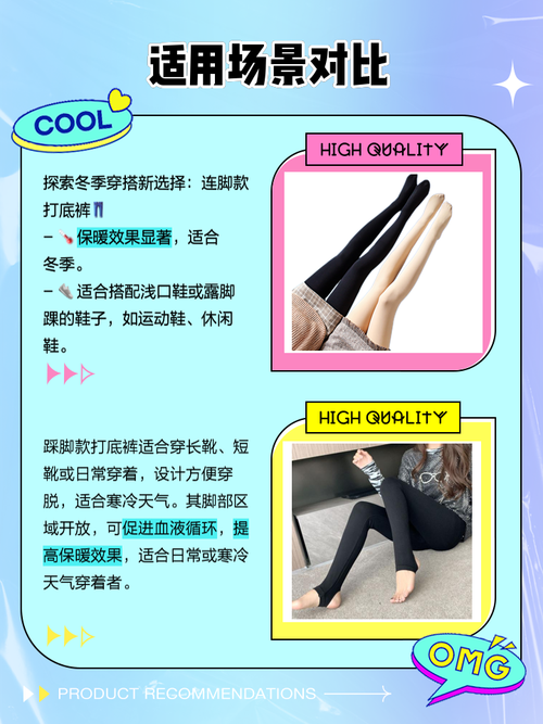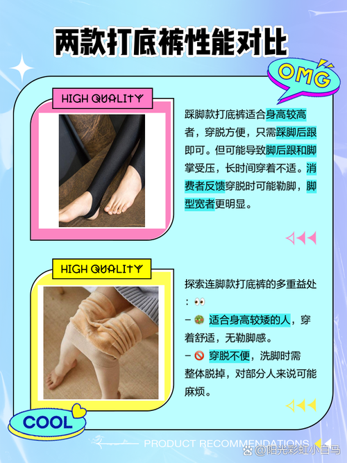 〖One〗、如果更看重美观和整体穿着效果,且没有脚部不适的问题,连脚打底袜可能是更好的选取。如果对连脚袜有脚部不适的感受,或者更喜欢踩脚袜的穿着方式,那么踩脚打底袜则更适合。