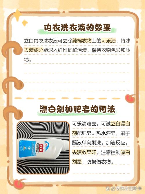 〖Five〗、当可乐不慎洒在白色衣物上时,确实可以通过正确的清洗方法去除污渍。 使用洗衣液清洗:由于可乐含有色素和糖分,一旦沾染衣物,应立即用洗衣液涂抹在污渍处,静置约5分钟以让洗衣液发挥作用,然后加入少量水,轻轻搓洗,这样可以有效去除色素和糖分,避免留下痕迹。