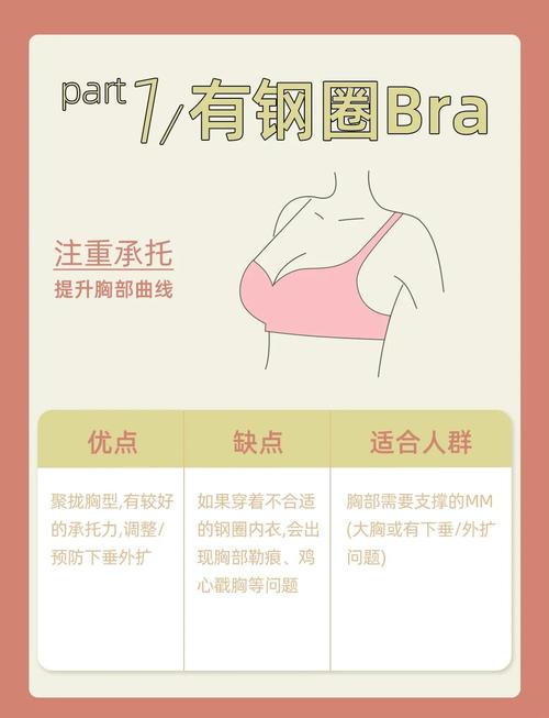 〖Six〗、内衣的分类主要基于是否含有钢圈。 软钢圈与无钢圈内衣在承托胸部方面存在差异。 无钢圈内衣因其舒适性而受到小胸女性的喜爱。 含有钢圈的内衣则更适合胸部较为丰满的女性,因为它们能提供更好的支撑。 在进行日常活动或运动时,有钢圈的内衣可以防止胸部受到拉扯,减少不适感。
