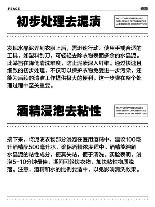 稍微加热再洗:你可以试着稍微加热一下裤子上有彩泥的地方,但记得时间别太长了哦,不然裤子要抗议啦!加热之后,再用洗衣液正常清洗,彩泥就容易跑掉啦。等干后刷掉再洗:如果不着急,就让水晶彩泥在裤子上自然风干吧。干了之后,用个软毛刷轻轻一刷,彩泥碎屑就能掉下来不少。