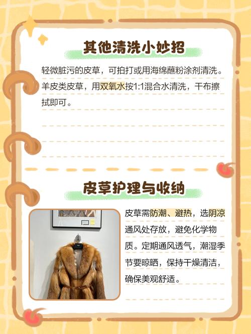 〖Two〗、要处理这个问题,您可以尝试以下方法: 通风晾晒:将貂皮大衣放在通风良好的地方晾晒,让异味随风散去。 使用清洁剂清洗:可以用专业的皮草清洁剂或温和的洗涤剂清洗貂皮大衣,但要注意使用方法和频率,以免对皮草造成损伤。