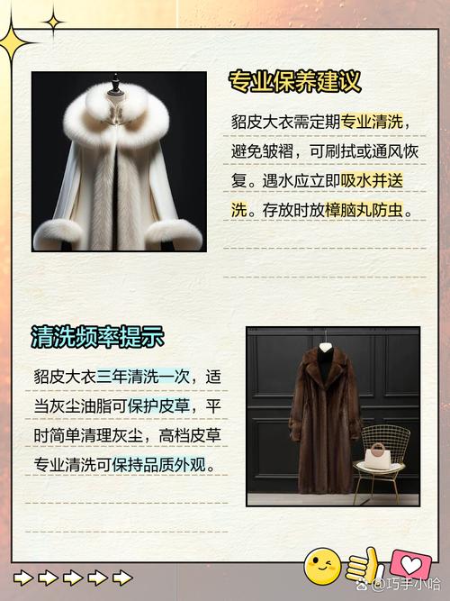 〖Four〗、综上所述,貂皮大衣一年清洗一次是比较合适的频率,同时应选取专业的干洗店进行清洗和保养,以确保其使用寿命和外观效果。