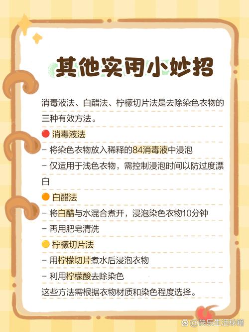 除了上述专业清洗方法,还可以尝试以下家庭常用方法: 食用盐清洗法:- 将针织衫浸泡在水中,用食用盐涂抹在染色处。- 轻搓后用清水冲洗干净。 洗米水清洗法:- 使用较浓的洗米水清洗染色处,浸泡约十分钟。 陈醋清洗法:- 用陈醋涂抹染色处,利用醋的酸性去除碱性染料。