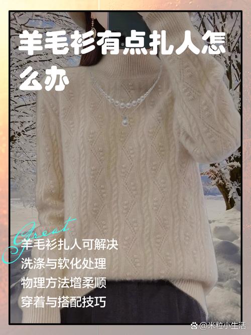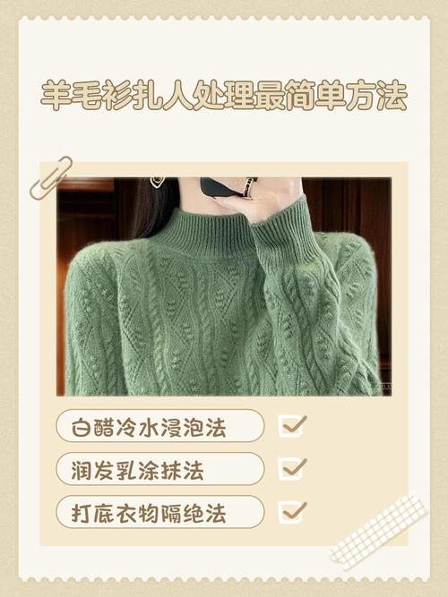 〖Two〗、先用白醋和水浸泡新购毛衣 为了确保新购买的毛衣舒适不扎人,建议在首次穿着前将其浸泡在含有适量白醋的冷水中。将毛衣反转,完全浸入醋水混合物中,浸泡一段时间后拧干。用润发乳轻柔搓洗 将润发乳均匀涂抹在毛衣上,用轻柔的手法搓洗,避免过度摩擦以保护毛衣纤维。