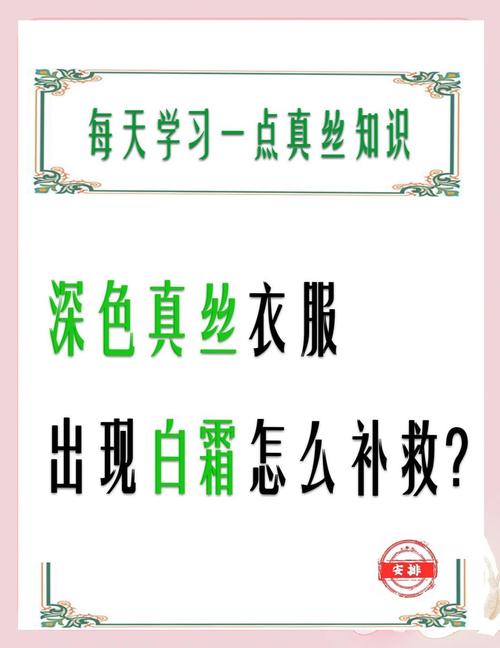 真丝衣服洗后有白霜不能用牛奶恢复。处理真丝衣服上的白霜,可以采取以下方法:使用软水剂:使用专门的软水剂去除白霜。草酸处理:将草酸溶于温水中,用棉签蘸取溶液涂抹并擦洗有白霜的地方,反复几次后轻轻用水擦洗。柠檬水浸泡:将真丝衣服浸入柠檬水中,尝试去除白霜。
