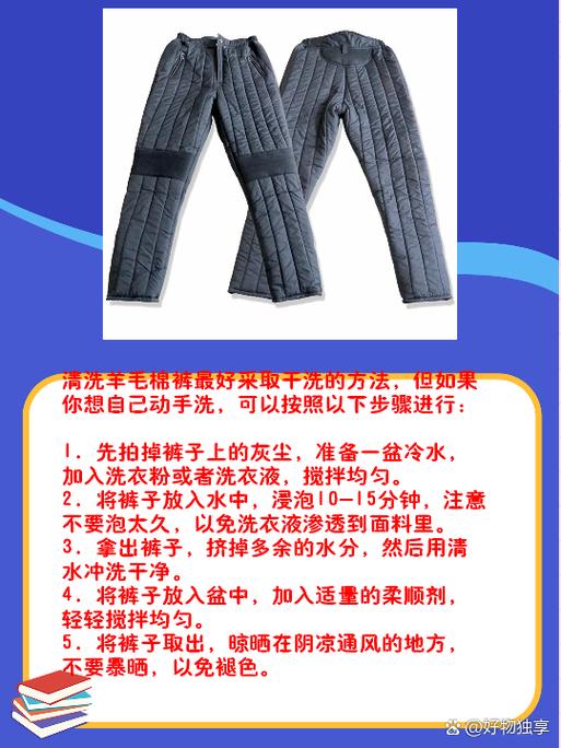 〖Five〗、羊毛棉裤通常可以进行水洗,但在洗涤前应将裤子浸泡在温度约为30℃的温水中。 选取中性且无酶的洗涤剂进行清洗,以避免对羊毛材质造成损害。 在清洗过程中,应采用挤压而非搓揉的方式,以呵护羊毛纤维。 与纯棉裤相比,羊毛棉裤在保暖性方面表现更佳,同时具备更优雅的外观。