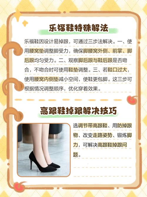 使用泡沫胶:将泡沫胶粘在脚跟上,可以避免鞋子和鞋跟之间的摩擦,从而防止脚后跟掉出。但需要注意的是,鞋跟后的泡沫胶可能不粘,且难以清理。 选取深口鞋子:如果穿浅口鞋子容易掉跟,可以选取穿深口鞋子,或者选取有带子的高跟鞋,如各种系带、绕脚踝的款式。