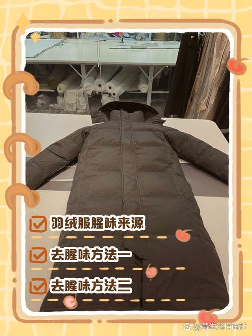 〖One〗、去除羽绒服难闻味道的方法主要有以下几种: 盐水浸泡法 操作方式:将羽绒服浸泡在半杯盐兑一加仑水的盐水中,大约浸泡一小时。之后用清水洗净即可。 原理:盐水可以有效地去除新衣服中的甲醛味道,提高穿着舒适度。 白醋浸泡法 操作方式:将白醋与水以1:1的比例混合,然后将羽绒服放入浸泡一小时。之后同样用清水洗净。