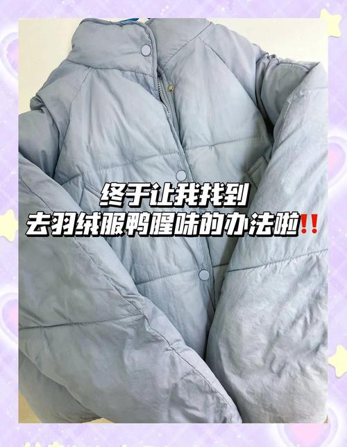 去除羽绒服上的鸭腥味,可以采取以下几种方法: 暴晒并喷洒清新剂 将羽绒服清洗干净后,晾在太阳底下暴晒。 晒的时候可以轻轻拍打羽绒服,使其更加蓬松。 晒过后,往羽绒服上喷洒如花露水、香水等味道清新的剂,以掩盖鸭腥味。 使用香皂 将羽绒服挂在通风良好的房间里。