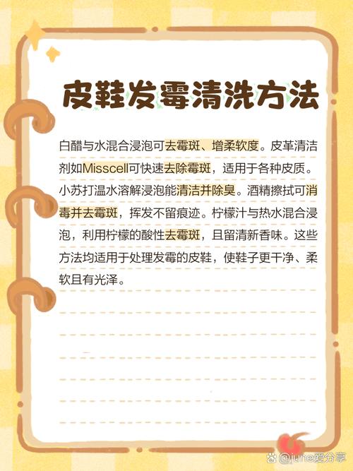 〖Five〗、去除皮鞋发霉味道的方法主要包括以下两点:使用酒精与水混合溶液擦拭:将酒精与水按照1:1的比例混合。用软布蘸取该溶液,轻轻擦拭皮鞋表面,特别是发霉的部分。擦拭完毕后,将皮鞋放在通风处晾干,这样不仅可以去除霉点,还能有效消除发霉的味道。使用皮革清洁剂并通风干燥:首先用干布将皮鞋表面的水分擦干。