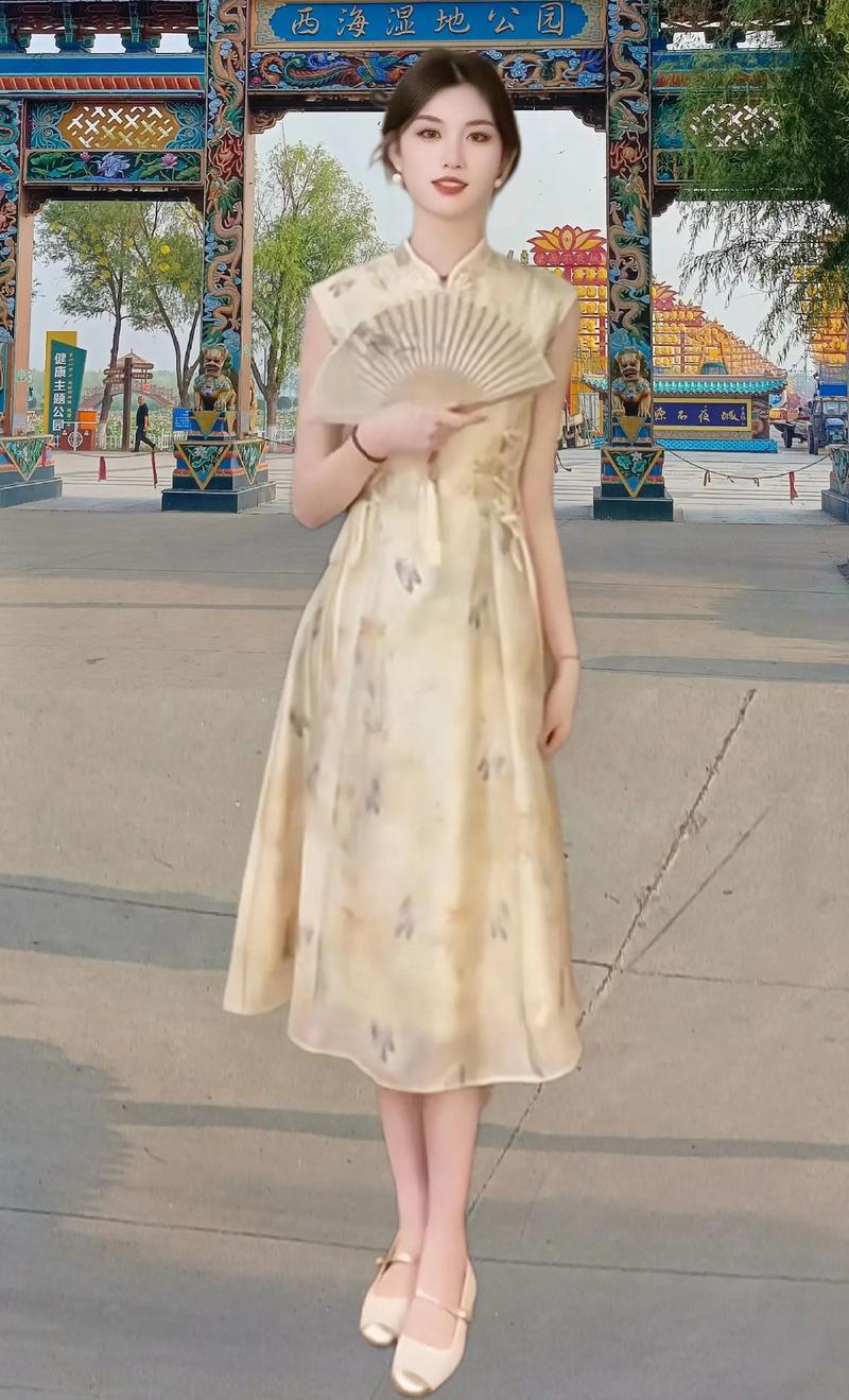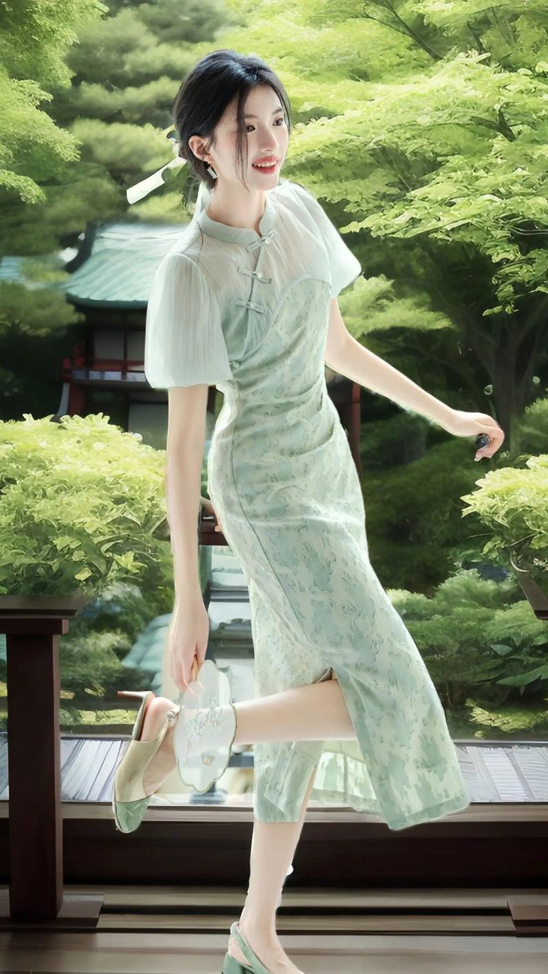 〖Three〗、玛丽珍鞋:玛丽珍鞋以其复古的圆头设计和低跟或平底设计,成为改良风格国风旗袍的理想搭配之一。它能够增添一份可爱和甜美,同时保持整体的优雅和协调。乐福鞋:乐福鞋以其休闲舒适的风格,与改良风格国风旗袍形成有趣的对比。这种搭配方式适合追求个性和时尚感的女性,能够展现出一种随性而又不失优雅的魅力。