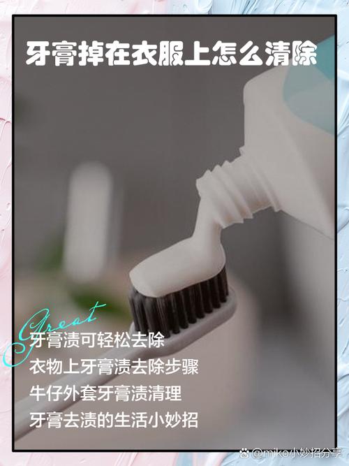 如果牙膏蹭到衣服上洗不掉,可以尝试以下几种方法: 温水泡洗 将衣服先放置几个小时,大约34小时后,再将衣服放入温水中浸泡半个小时。 注意使用温水而非开水,浸泡后着重搓洗有牙膏的地方,通常可以轻松洗掉。 软布擦拭 将衣服放在通风位置让牙膏快速干透,或者使用吹风机将牙膏渍吹干。