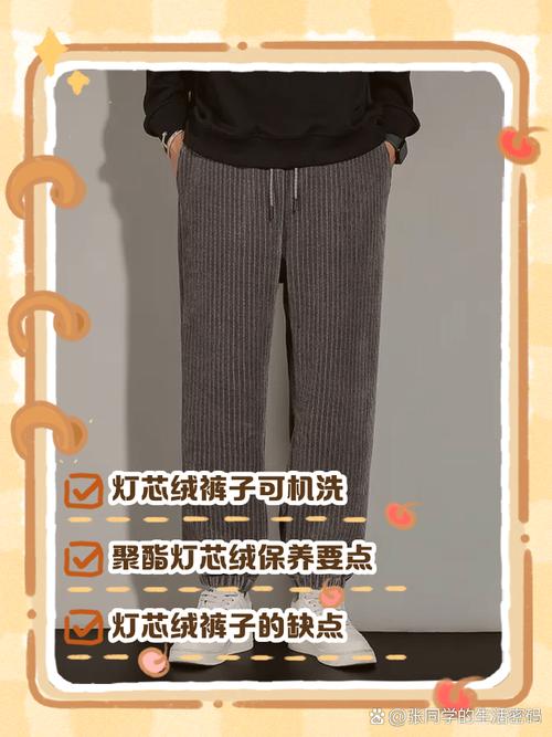 〖Two〗、灯芯绒裤子洗后毛不顺,可以采取以下措施处理:使用熨斗熨平:如果条件允许,使用熨斗将灯芯绒裤子熨平是最直接有效的方法。熨斗的高温可以帮助绒毛恢复顺滑。八分干时抻平并倒挂晾干:如果无法使用熨斗,可以在裤子八分干的时候将其抻平,确保没有褶皱,然后裤线对齐倒挂在裤挂上晾干。