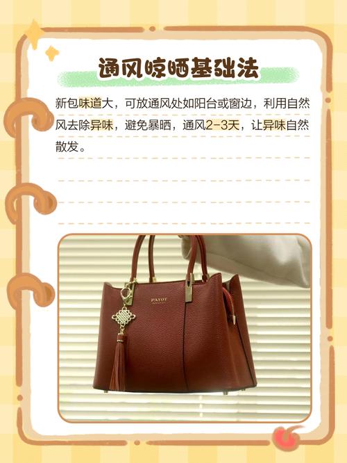 〖Three〗、想要快速去掉新买的包包的味道,你可以试试这几个小妙招哦:通风擦拭法:用半干半湿的软毛巾,把包包里里外外都擦拭一遍,然后放在通风的地方晾晾,味道就会慢慢散去啦。橘子皮除味法:吃完橘子或者柚子,把皮留下来,洗干净晾干后,切成小块放在包包里,关上包包。
