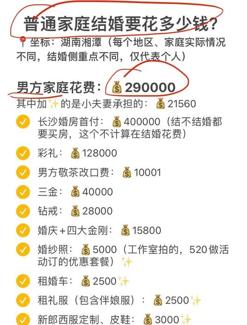 结婚三金或者结婚五金是男方为女方准备的聘礼,很多地方都有这样的习俗。三金的费用大概是一万二,五金的话要两万左右,男方要提前准备好。婚品 男方还需要购买一些结婚用的物品,比如婚戒、婚纱礼服、喜糖、烟酒等。这些东西的费用都不低,根据所需要的数量来准备,预算是三万元左右。