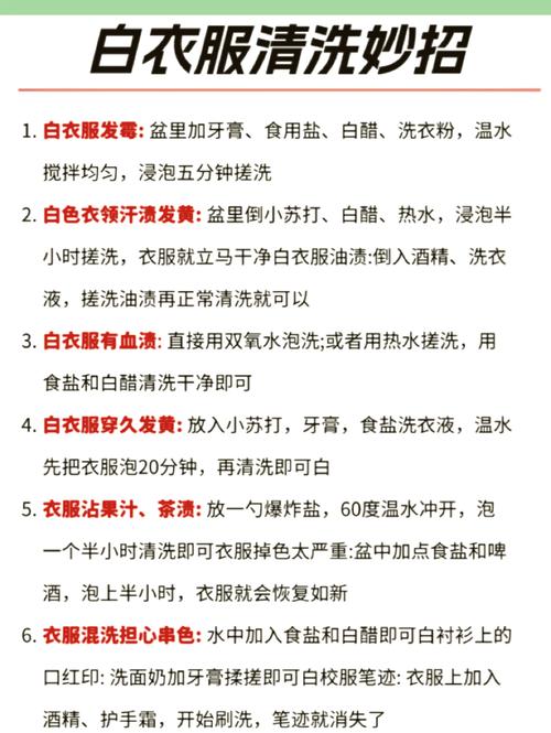 〖Three〗、如果经过上述步骤后,白衣服上的咖喱汁依然顽固不化,可以尝试使用专门的去污剂,按照产品说明进行局部处理。轻轻涂抹于污渍处,静置一段时间后,再用温水和洗衣粉清洗。总的来说,处理白衣服上的咖喱汁,关键在于及时处理和使用合适的清洁方法。