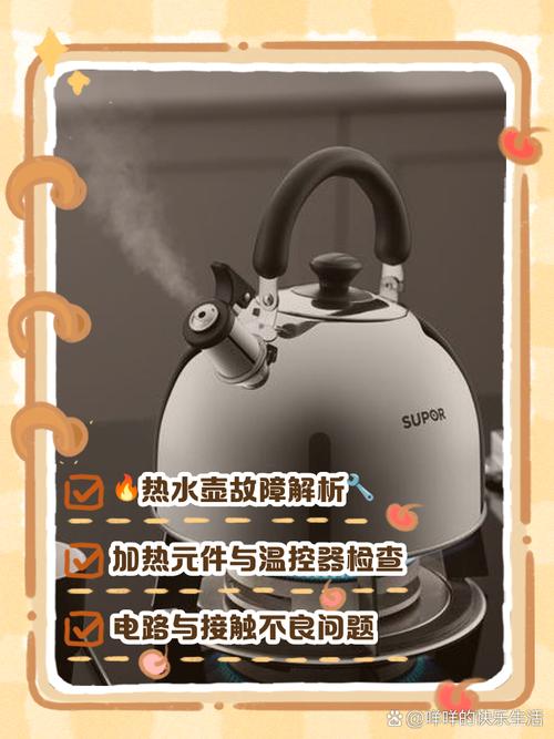 〖Six〗、电热水壶指示灯亮却不加热,可从以下几方面排查解决。若发热管故障,发热管使用久了可能损坏。需先断电,打开壶底,查看发热管是否有明显损坏迹象,如断裂、变色等。若损坏,需购买同型号发热管更换,更换时要注意安装牢固,连接好线路。若温控器故障,温控器能控制水温,若其失灵也会导致不加热。